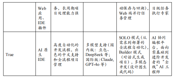 字节跳动 Trae:作为字节跳动旗下火山引擎推出的智能编程助手,Trae凭借字节跳动在超大规模代码库上的深厚技术积淀以及对现代开发流程的深刻洞察,展现出强大的市场竞争力。依托于字节自研的先进代码大模型以及对海量内部工程实践的高效学习,Trae在代码生成的质量和对中文开发语境的理解上具有独特优势。如今的Trae已构建起一个覆盖开发全周期的智能平台,其深度定制的IDE插件允许开发者通过便捷的聊天交互,完成代码审查、性能调优、依赖迁移等复杂操作。其“智能代码库导航”和“端到端任务执行”等核心能力,使其能够系统性地理解项目上下文,并自动完成如“实现一个完整的用户登录功能”这类需要前后端联动的开发任务,极大地提升了研发效率与代码质量,成为团队提效的关键推动力。