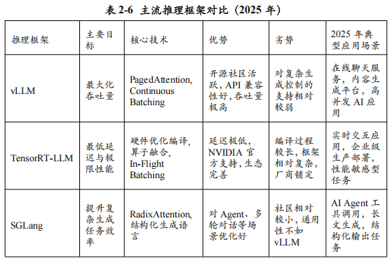 如果说上述优化技术是散落在各处的“神兵利器”,那么推理框架就是将它们系统性地整合、封装,并提供给开发者便捷调用接口的“武器库”和“兵工厂”。2025年,大模型推理框架的竞争格局已经高度集中,以vLLM和TensorRT-LLM为代表的开源与商业框架,凭借其卓越的性能和强大的生态,成为了绝大多数开发者和企业的首选。