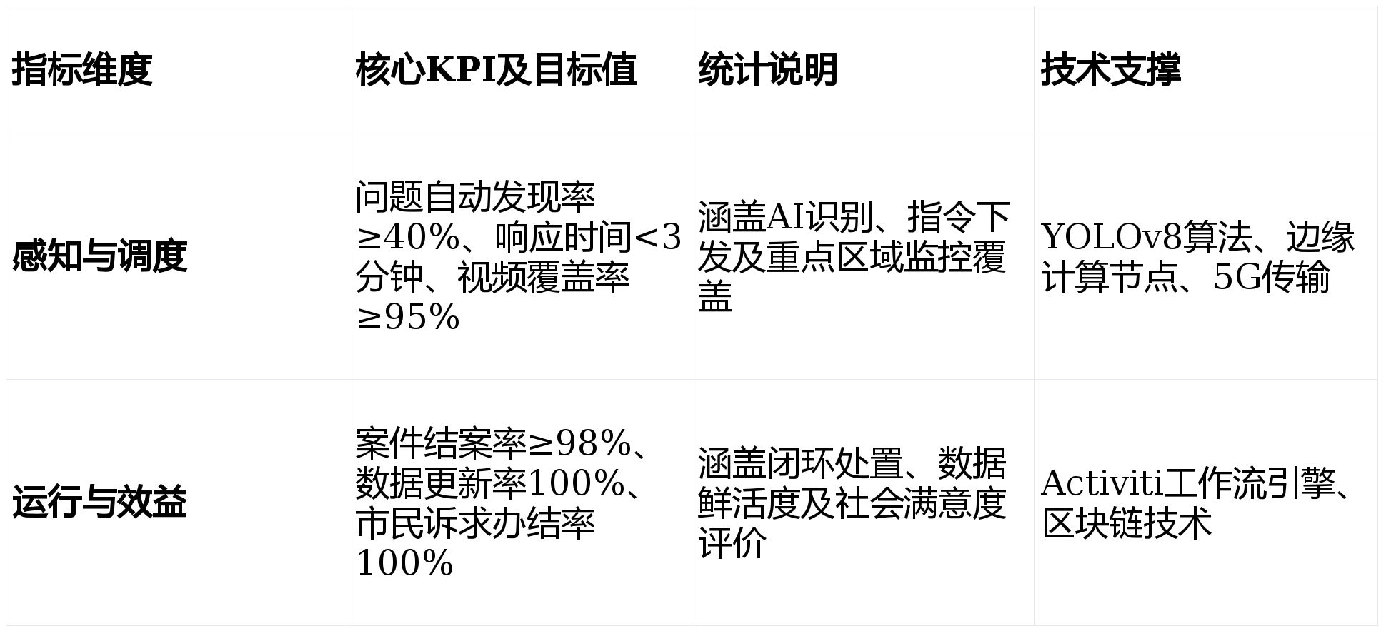- 重点区域视频监控覆盖率≥95%,问题自动发现率提升至40%以上