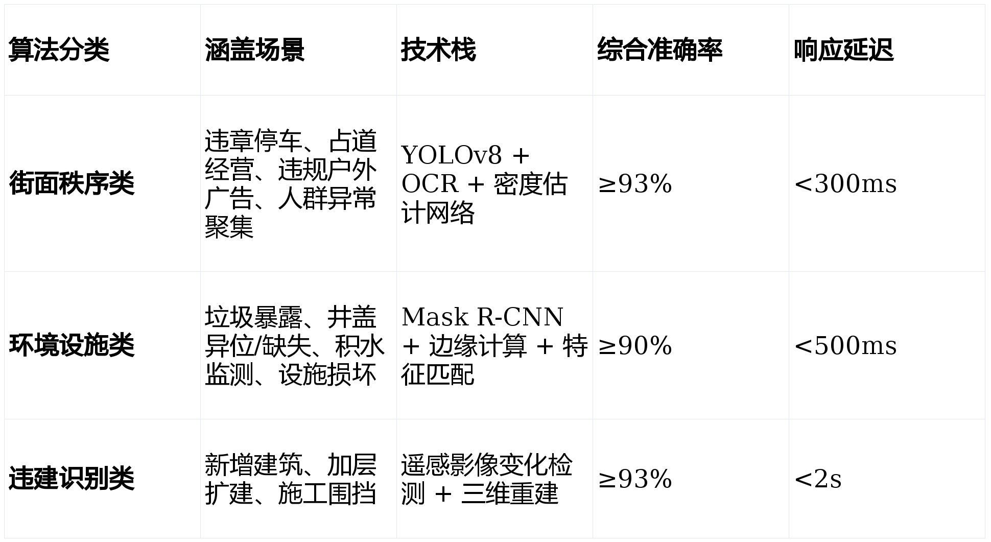 - 利用AI视频分析、物联感知技术,实现12类市容问题自动识别