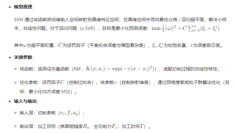 :切削参数(切削速度vc、进给量f、切削深度ap)与加工指标的关系具有强非线性、小样本特性(实验成本高),传统线性模型(如回归分析)泛化能力差;