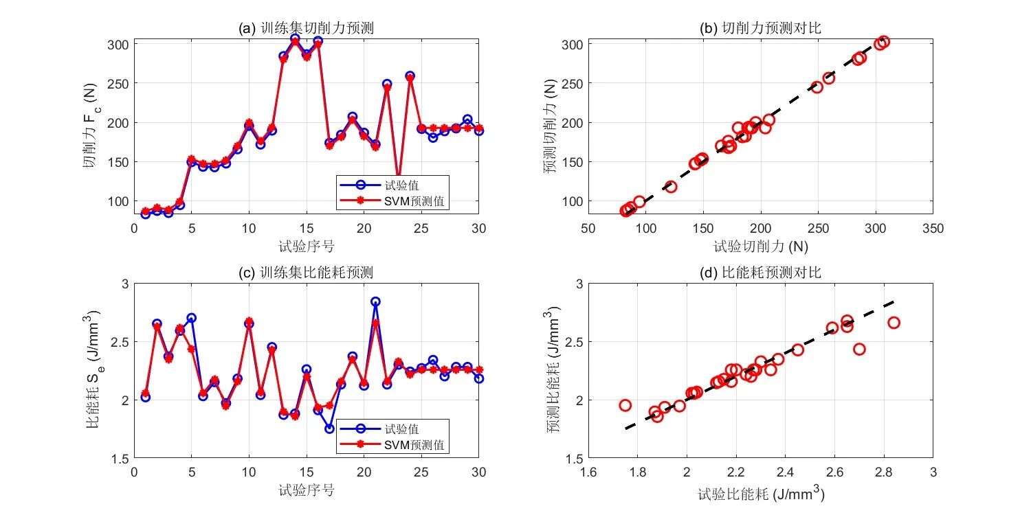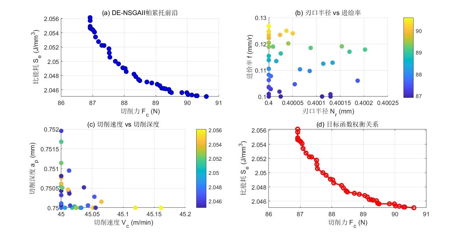 方法创新价值:将支持向量机(SVM,小样本非线性建模优势)与 DE-NSGAII(差分进化改进的非支配排序遗传算法,增强多目标寻优能力)结合,构建 “高精度建模 - 全局寻优” 框架,实现齿盘切削参数的多目标协同优化,为精密加工工艺决策提供科学依据。