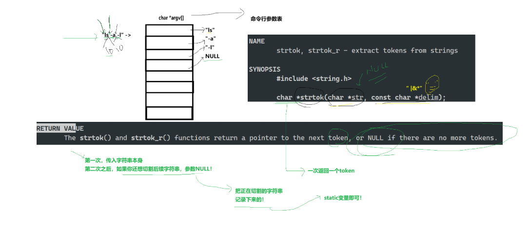 //第3步:解析字符串,"ls -a -l" -> "ls" "-a" "-l"