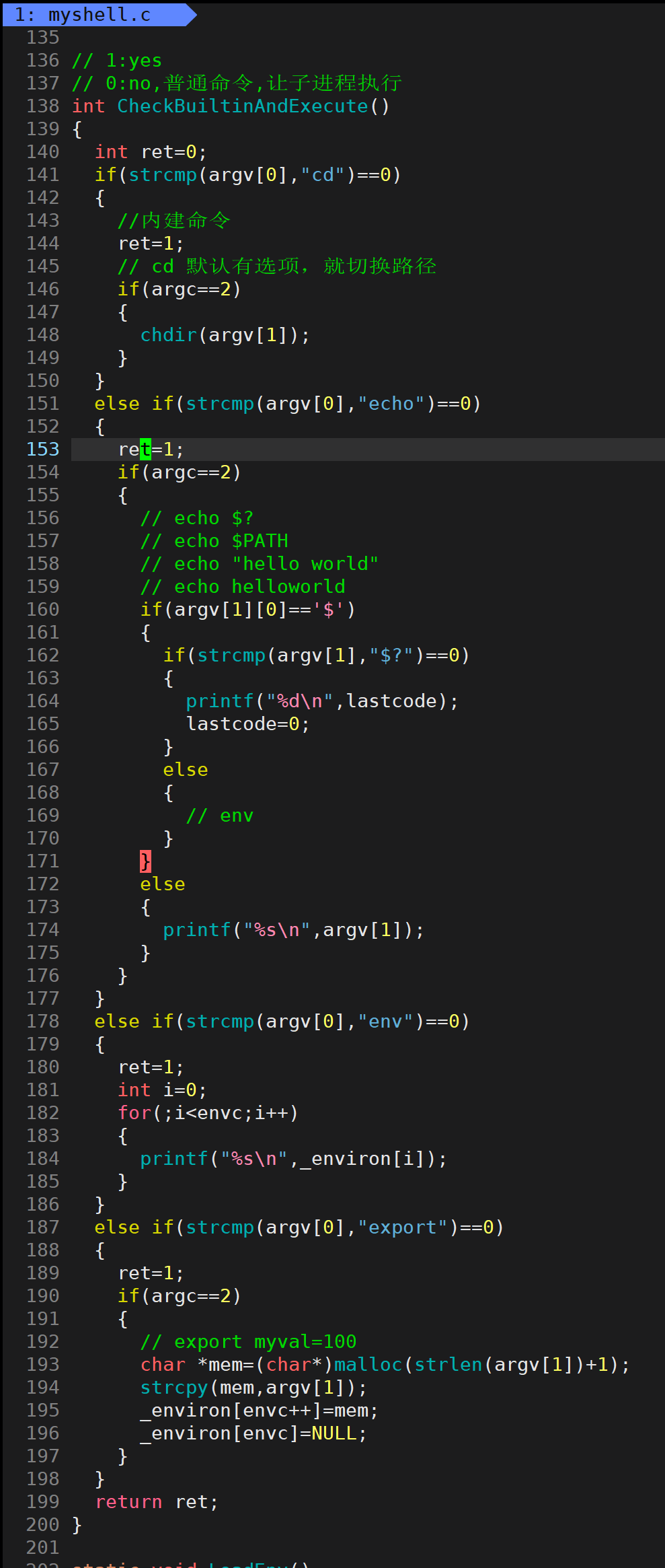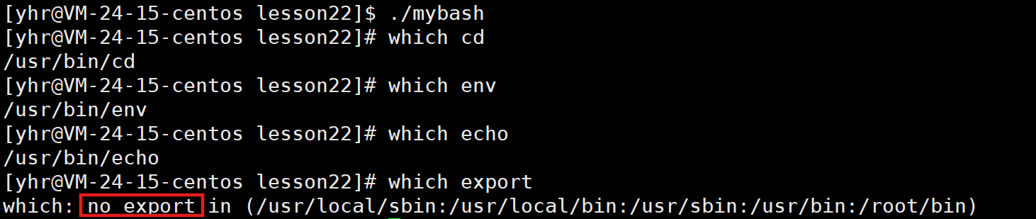 //第4步:有些命令,cd,echo,env,export等命令,不应该让子进程执行
