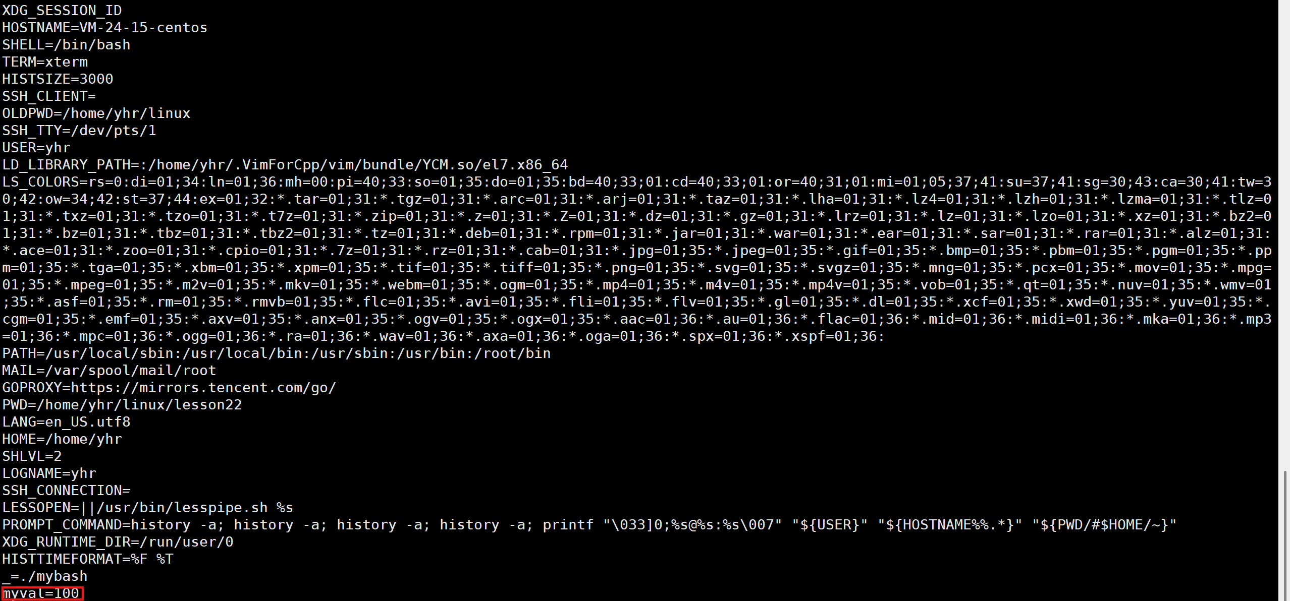 指令:export myval=100