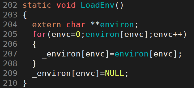 for(envc=0;environ[envc];envc++)