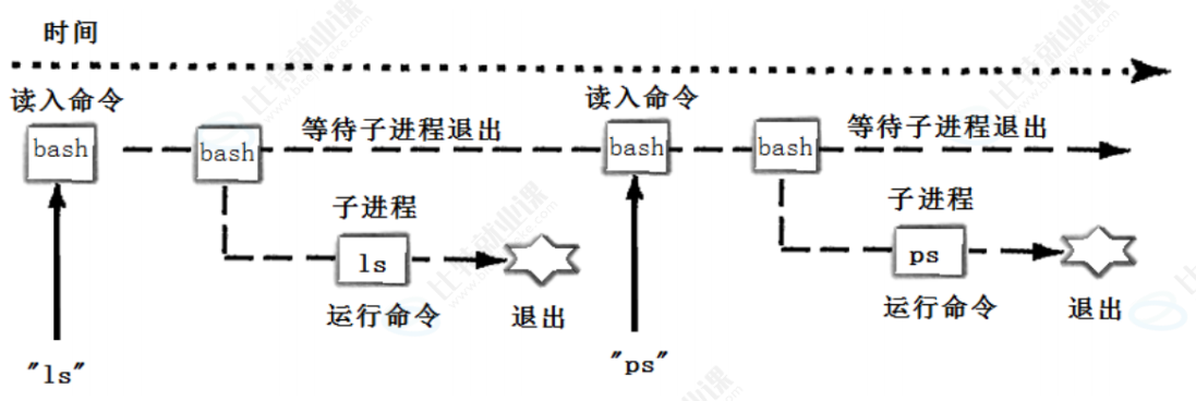//父进程bash自己执行,内建命令,bash内部的函数