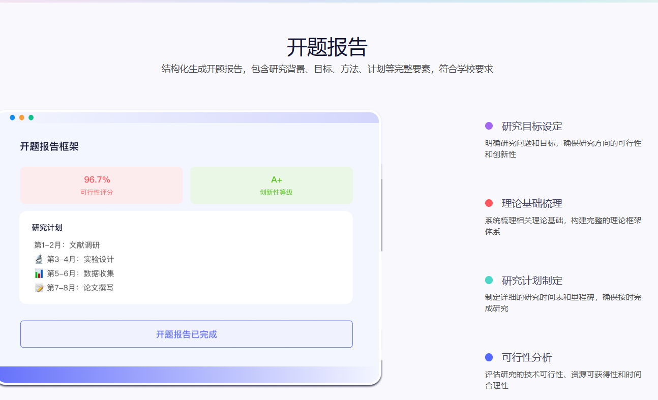 结果:原本需要一周时间反复修改的开题报告,小王在三天内就完成了高质量初稿,导师评价“框架清晰、重点突出、格式规范”。