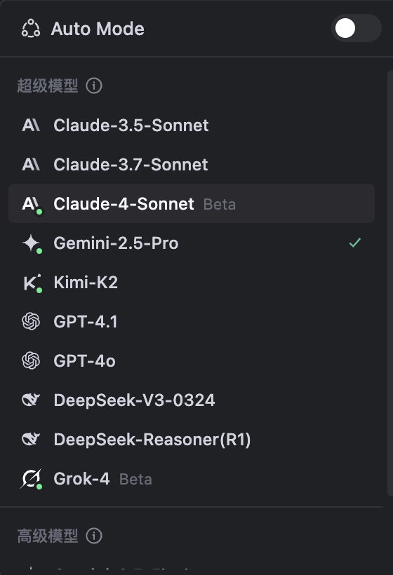 - Cursor:一个“AI优先”的代码编辑器,是VS Code的一个分支。它具备深度代码库理解、智能代码重构和可以端到端完成开发任务的“智能体模式” 。
