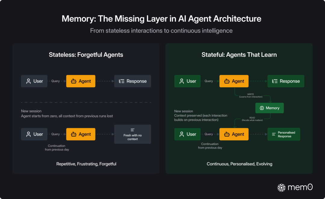 记忆机制是区分智能体与无状态工具的核心,它赋予智能体在交互中保持上下文、并从历史经验中学习的能力 。