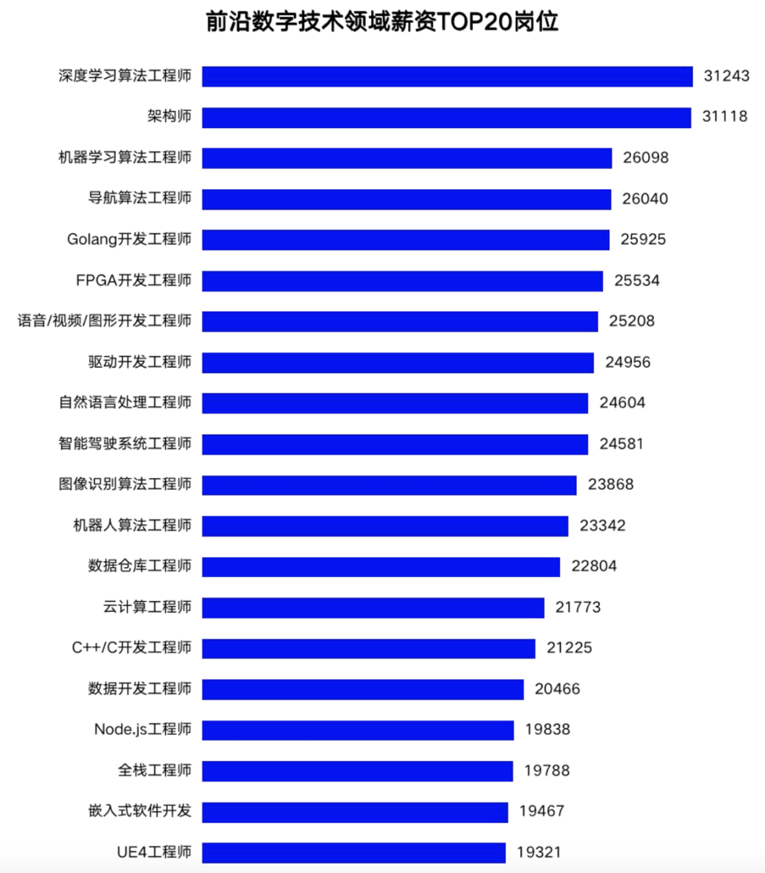AI相关,细分技术领域,薪资前20岗位,都有哪些。