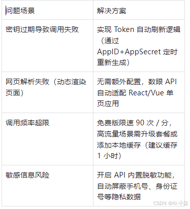 - 缓存策略:对高频访问的固定网页(如政策文件),本地缓存解析结果,减少重复调用;
