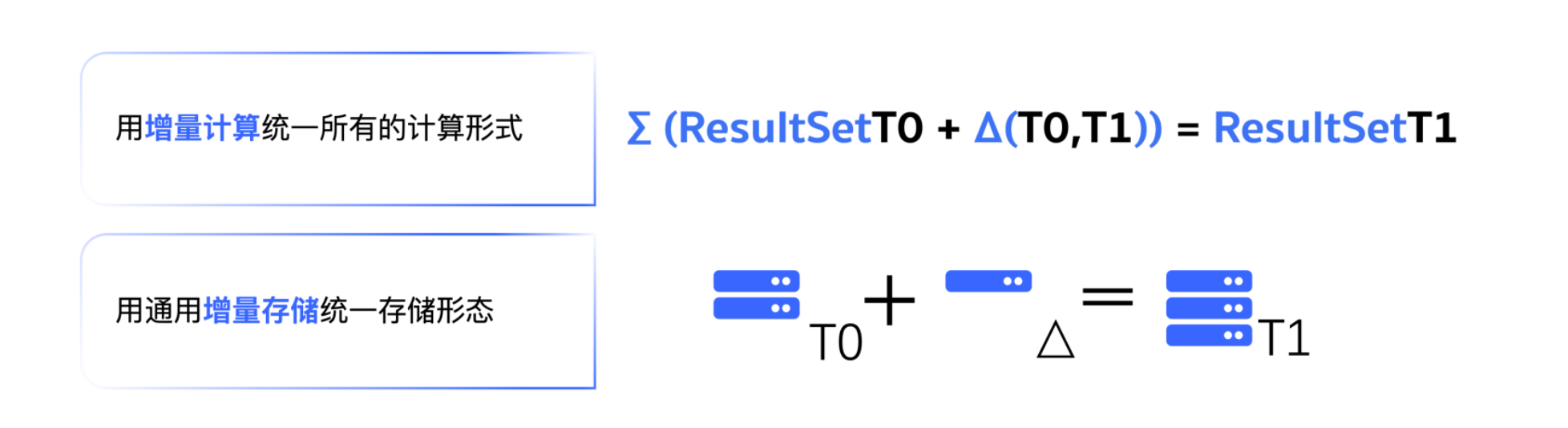 只处理变化的部分,不重复计算已经算过的东西。这个方式并不像说的那样容易,需要从底层重新设计计算引擎:精确追踪数据的每一个变化,理解变化对下游计算的影响,只对需要更新的部分做增量处理。这涉及到存储格式、索引结构、执行计划、状态管理的全面重构。