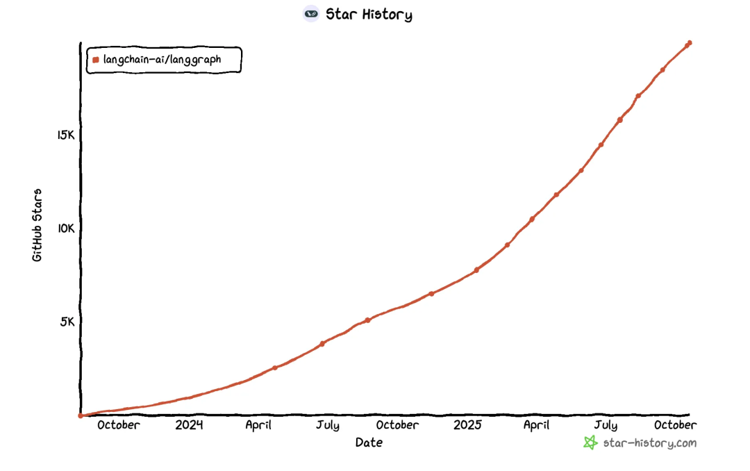 LangGraph在Github上的热度变化(能看出框架的火爆程度,值得投入学习)
