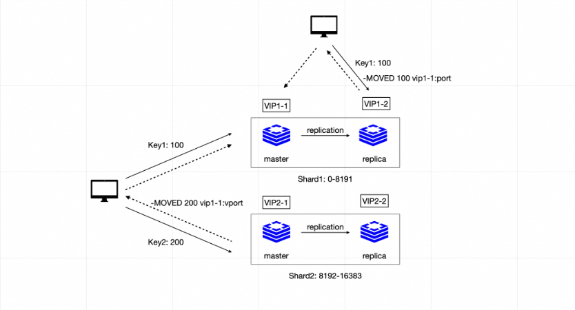 key1: 100 访问VIP1-2的replica节点,会返回MOVED。
