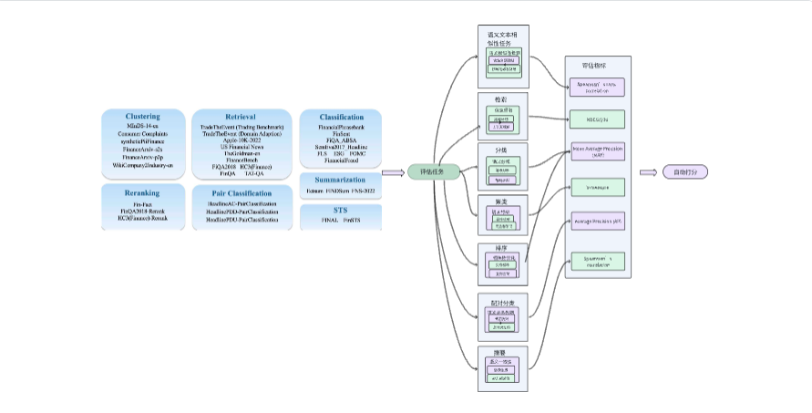 FinMTEB是专为金融领域设计的嵌入模型评估基准,包含64个中英文金融领域数据集。这些数据集涉及金融新闻、年报、ESG报告、监管文件和财报电话会议记录等多种文本类型,旨在评估嵌入模型在金融领域的表现。