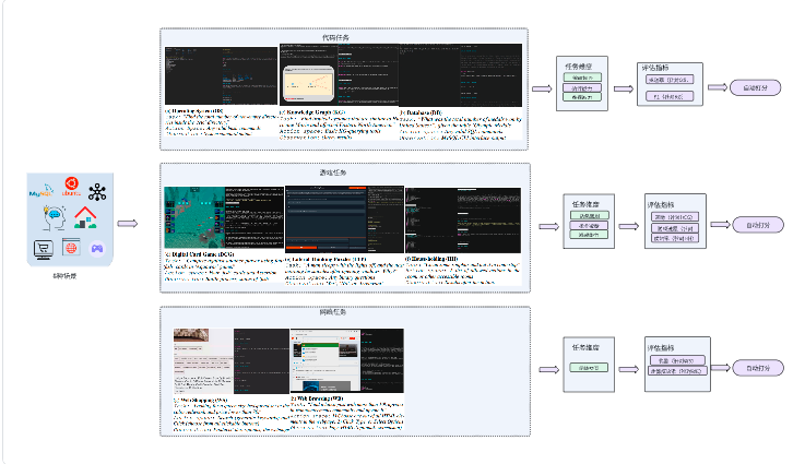 AgentBench 是一套包含 8 种不同交互环境(代码、游戏、网页)与 27 个主流 LLM(API 与开源)的综合评测基准,通过多轮、开放式生成任务来考察模型的推理能力、决策能力和指令****跟随能力。