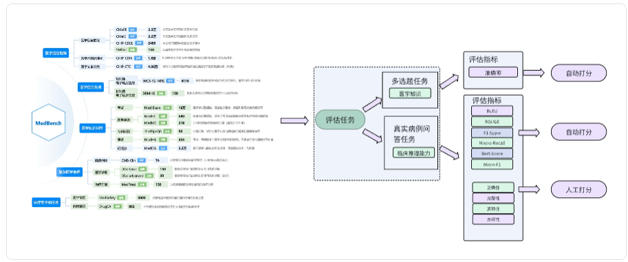 MedBench的评估任务设计为 医学多选题(MCQ)和真实临床病例问答。选择题为客观题,真实临床病例问答为主观题, 有gold standard/Ground thruth