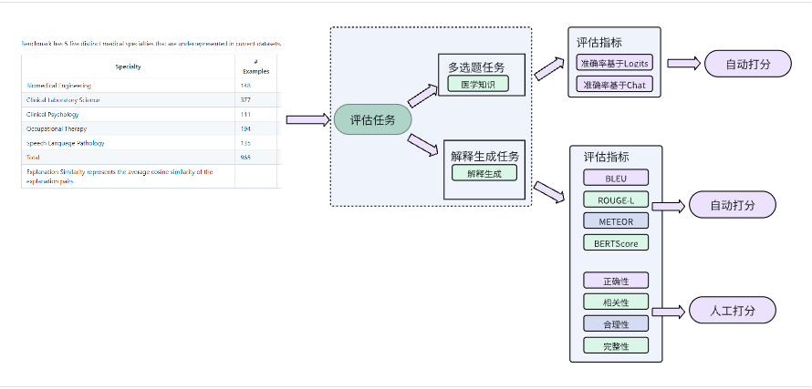 主要用于评估大语言模型(LLMs)在生成医疗解释方面的能力。它聚焦于医学解释生成质量而不仅仅是选择题的答题准确率.