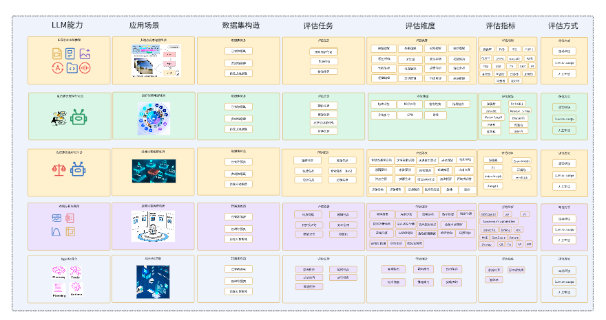 将上面五种场景中的评估指标和评估任务做个总结,可得下面的架构图