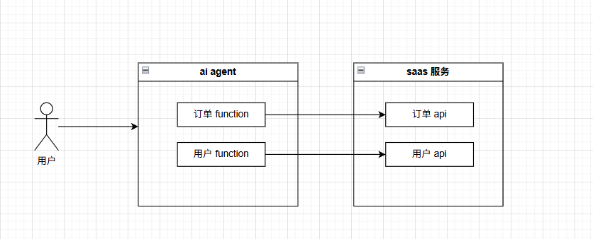 这是最基础、最快捷的集成方式,核心逻辑就是:将传统Restful API的调用逻辑,封装成AI Agent能识别的Function(函数),当用户触发相关需求时,AI Agent直接调用对应Function,进而触发后端API执行操作(比如查询订单、发起支付)。
