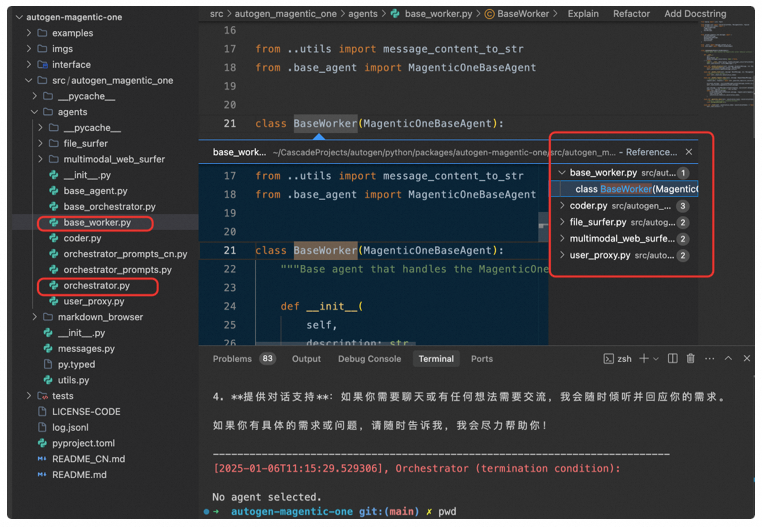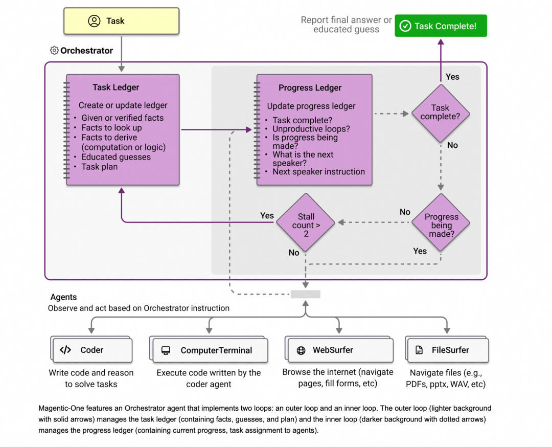 | Magic-One | 编排者模式,适合解决复杂任务的场景 * 预设5个专业智能体(协调器+4个功能智能体) * 基于AutoGen构建 * 内置性能评估工具 * 支持多种LLM模型 | * Web浏览和文件处理任务相关 * 快速搭建通用的多智能体系统 | * 技术社区目前案例比较少 | ⭐️⭐️⭐⭐ |