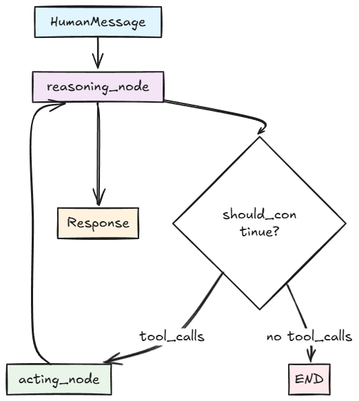 def run_react_agent(query): state = initial_state while not is_finished(state): thought = generate_thought(state, query) action = decide_action(thought) if action: observation = execute_action(action) state = update_state(state, thought, action, observation) else: break return generate_response(state)