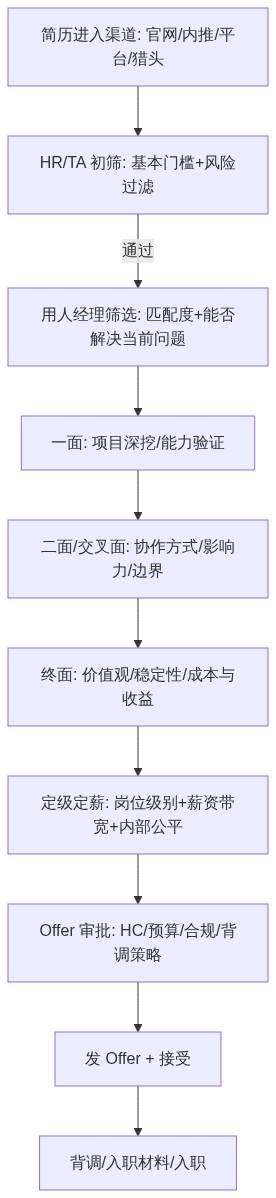 8)Offer 审批:HC、预算、合规、背调策略在看什么?