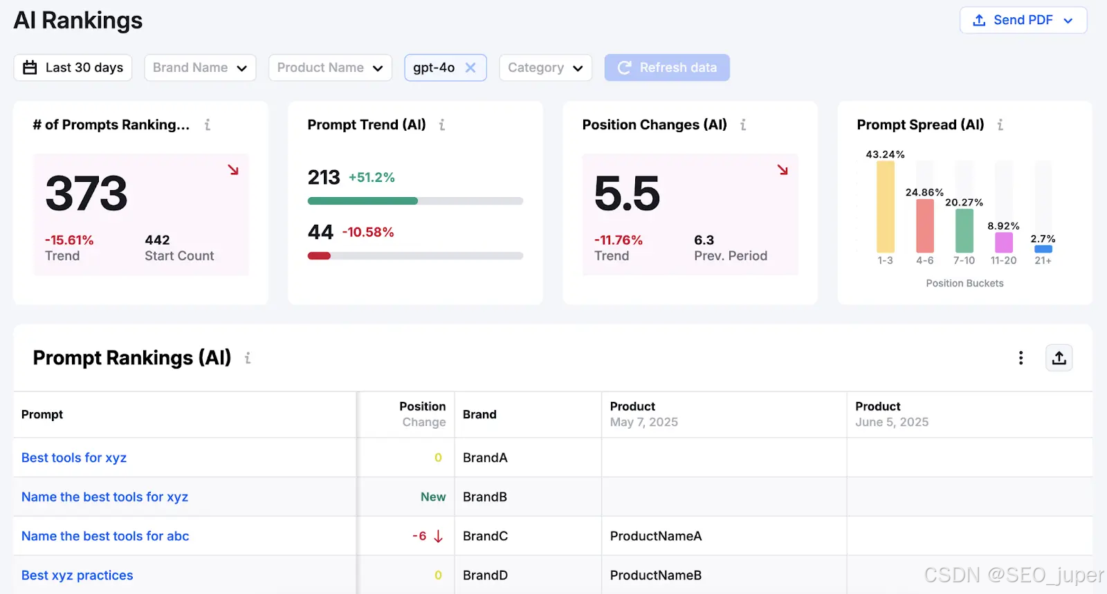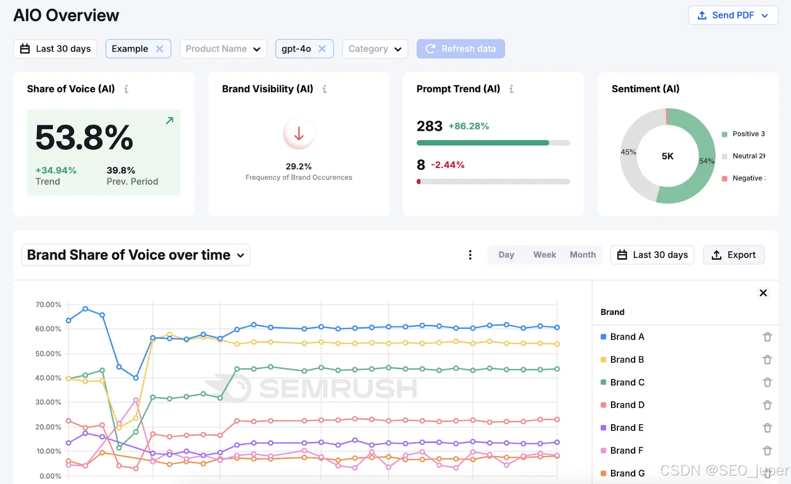 Enterprise AIO 还帮助您将 AI 可见度与竞争对手进行基准对比,从而跟踪品牌提及、情绪和市场份额在 AI 搜索平台上的表现。