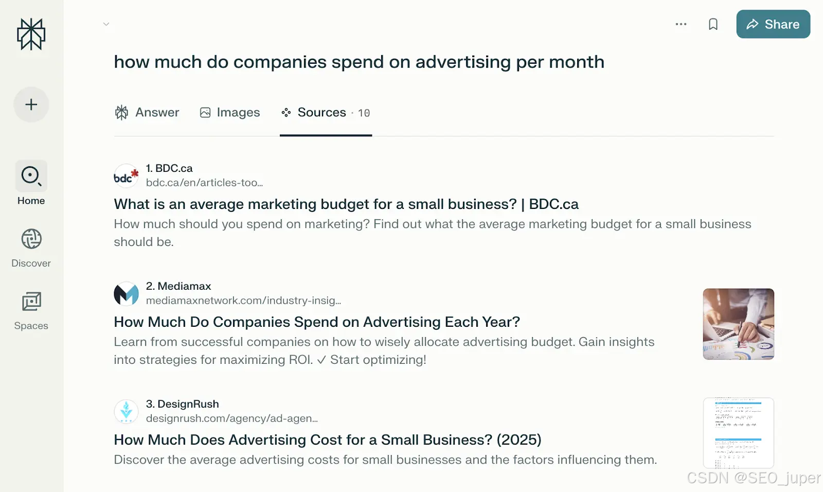 - 多个资料会被合并。人工智能从多个网站提取信息,生成一个答案。