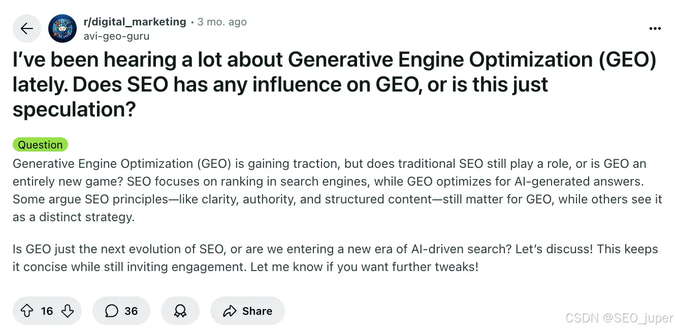 这种LLM优化方法也被称为生成式引擎优化(GEO),侧重于更频繁地被引用,并在AI生成的回答中排名更高,而非传统的搜索引擎结果。