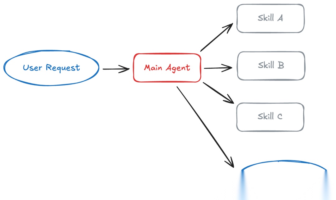 在技能模式中,智能体按需加载专门的提示词和知识。可以把它理解为智能体能力的渐进式披露。