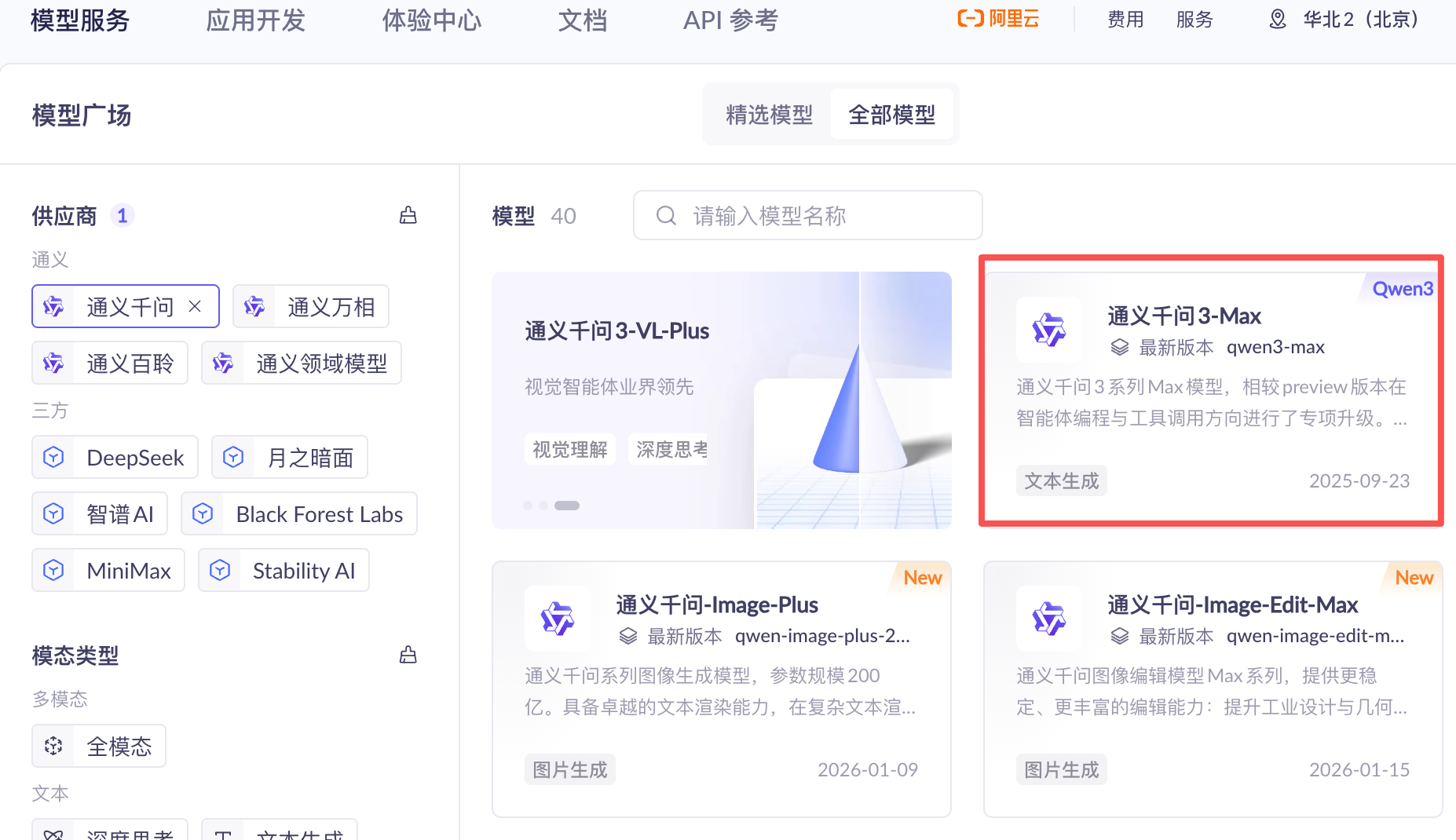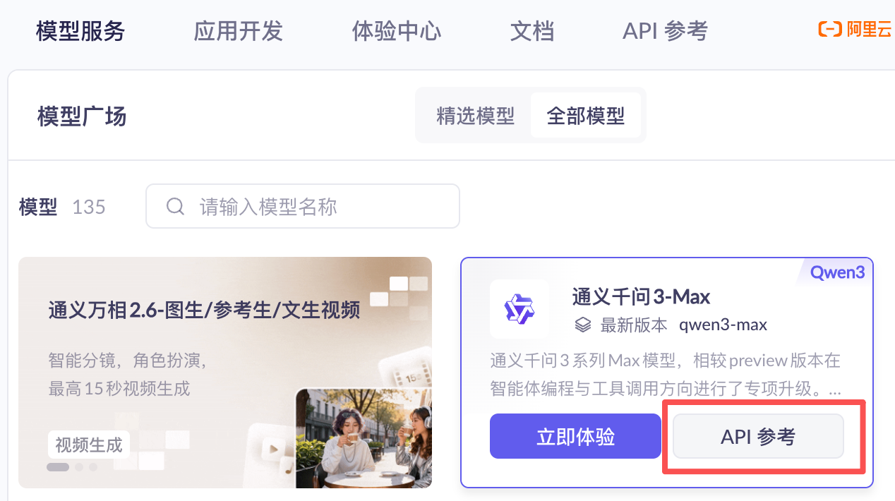 他人部署方式即依赖平台提供的Api进行调用,这里我们以【阿里云百炼】为例。