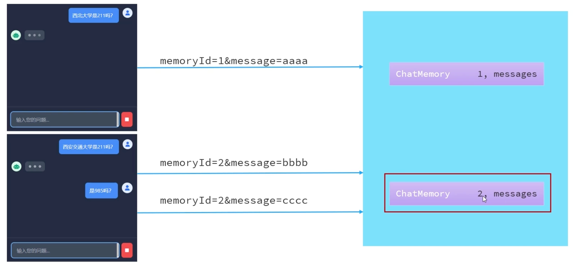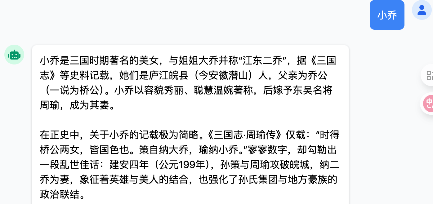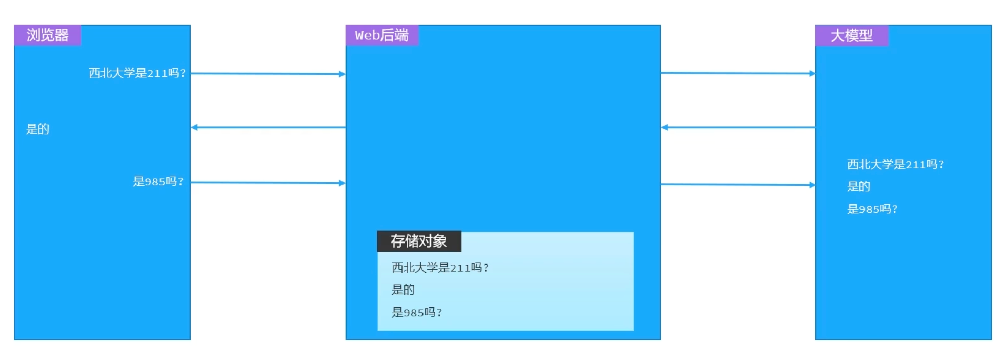 ③ assiant:每一次发送请求,大模型都会独立回答用户问题,而无法联系上下文,比如: