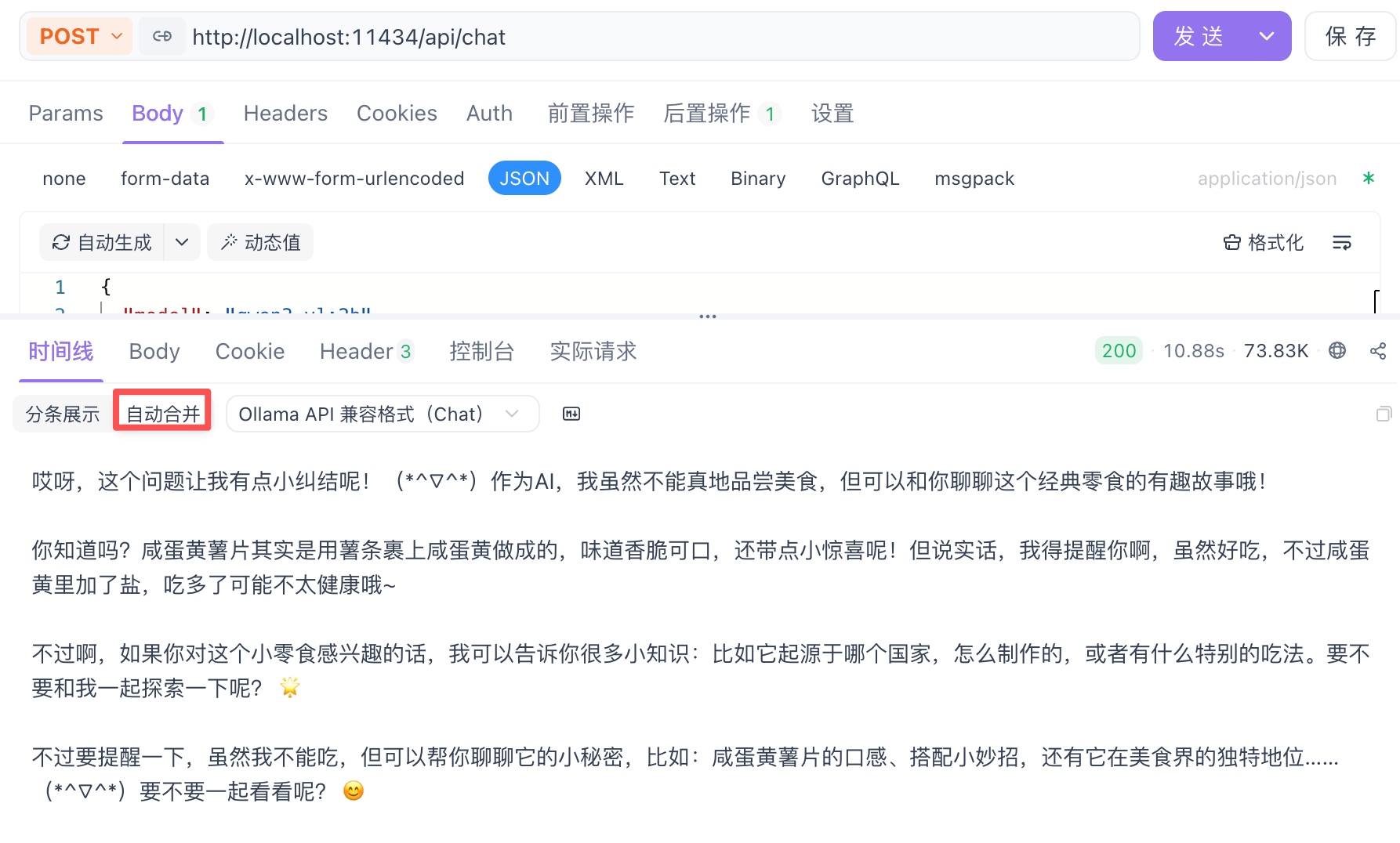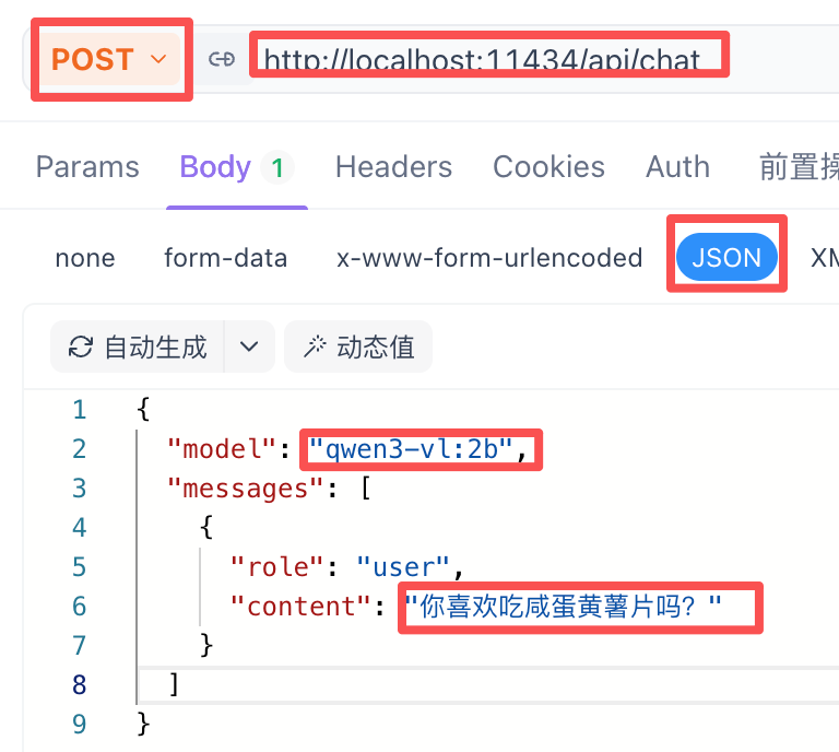 和前面本地部署类似,将请求地址复制到Apifox,请求体选择JSON