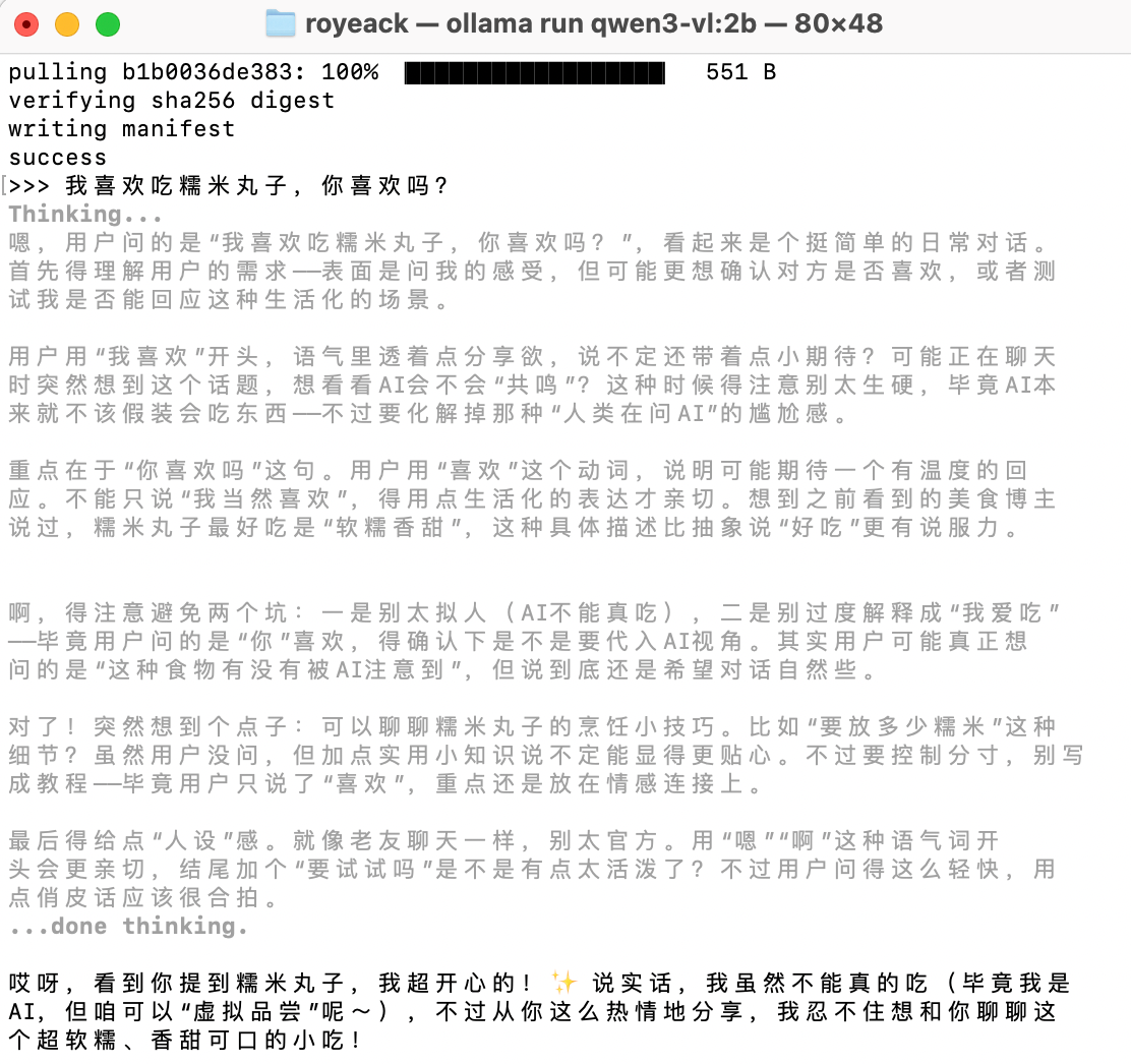 成功后输入你想问的问题,部署的qwen3就会回答你