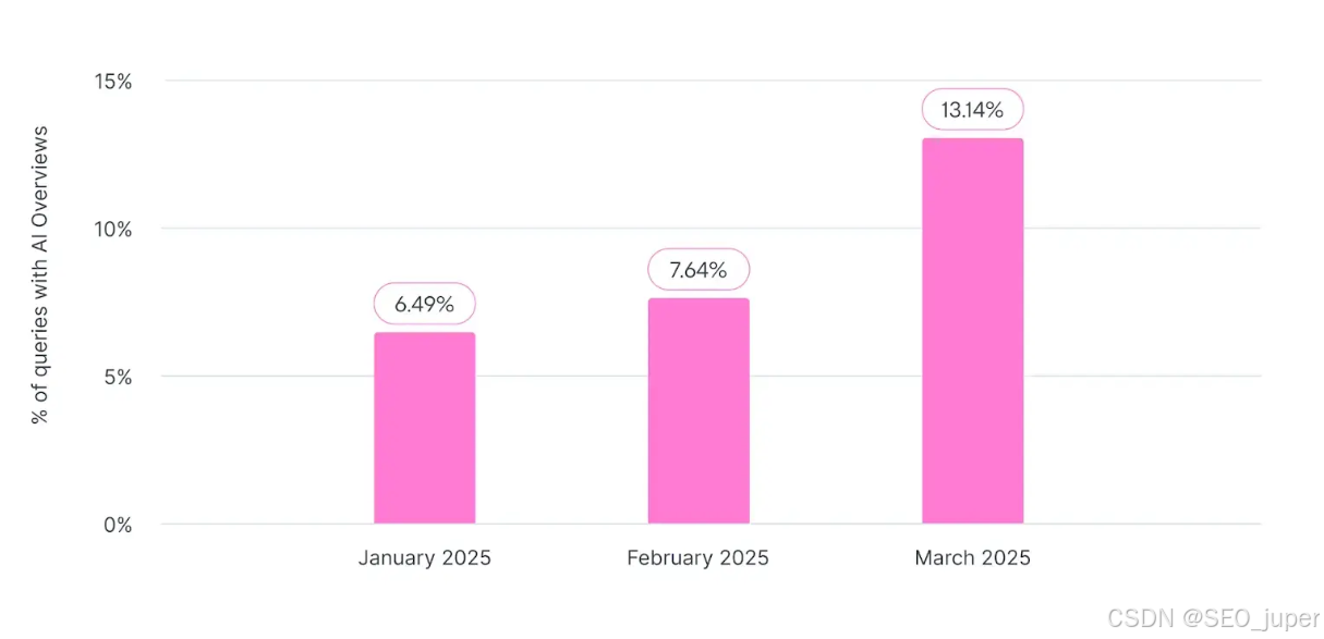 AI搜索的增长速度正在重塑信息获取方式。数据显示,2025年3月美国桌面端搜索中,13.14%的查询会触发Google AI概述(AI Overviews),较1月的6.49%实现翻倍增长;另有调查显示,60%的美国人会通过AI工具获取信息。