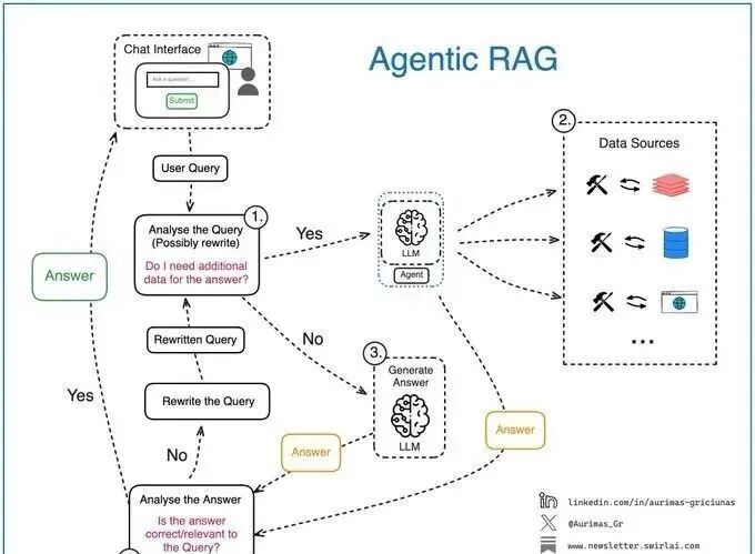 具体来说,Agentic RAG通过Self-RAG等小白也能快速了解的框架,实现自我反思:它会先生成一个初步答案,然后立刻追问自己三个问题:① 我检索到的信息准确吗?有没有来源依据?② 这些信息能精准解决用户的问题吗?有没有遗漏关键点?③ 我的输出逻辑通顺吗?有没有矛盾的地方?