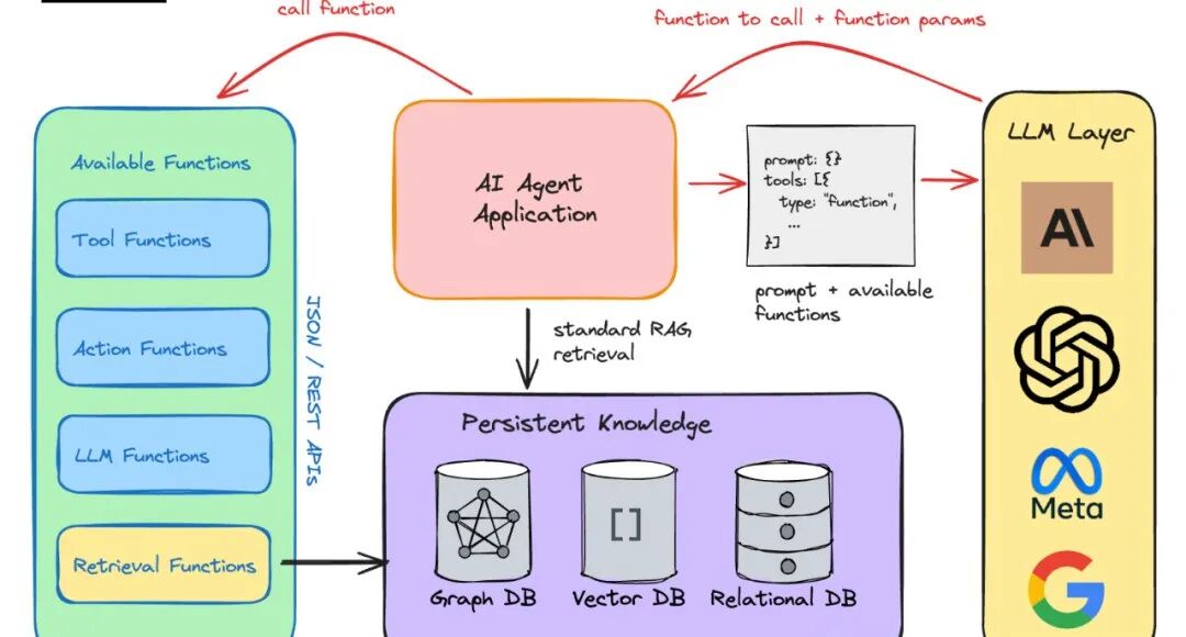 真正的强者,从来不是“什么都懂”,而是“善于借助工具解决问题”,Agentic RAG就是这样的“行动派”。它不再局限于“检索→生成”的单一流程,而是能通过API接口,实时调用各种工具,比如搜索引擎、代码解释器、财报数据库、图表生成工具,甚至是小白常用的笔记工具、翻译工具,实现“知行合一”。