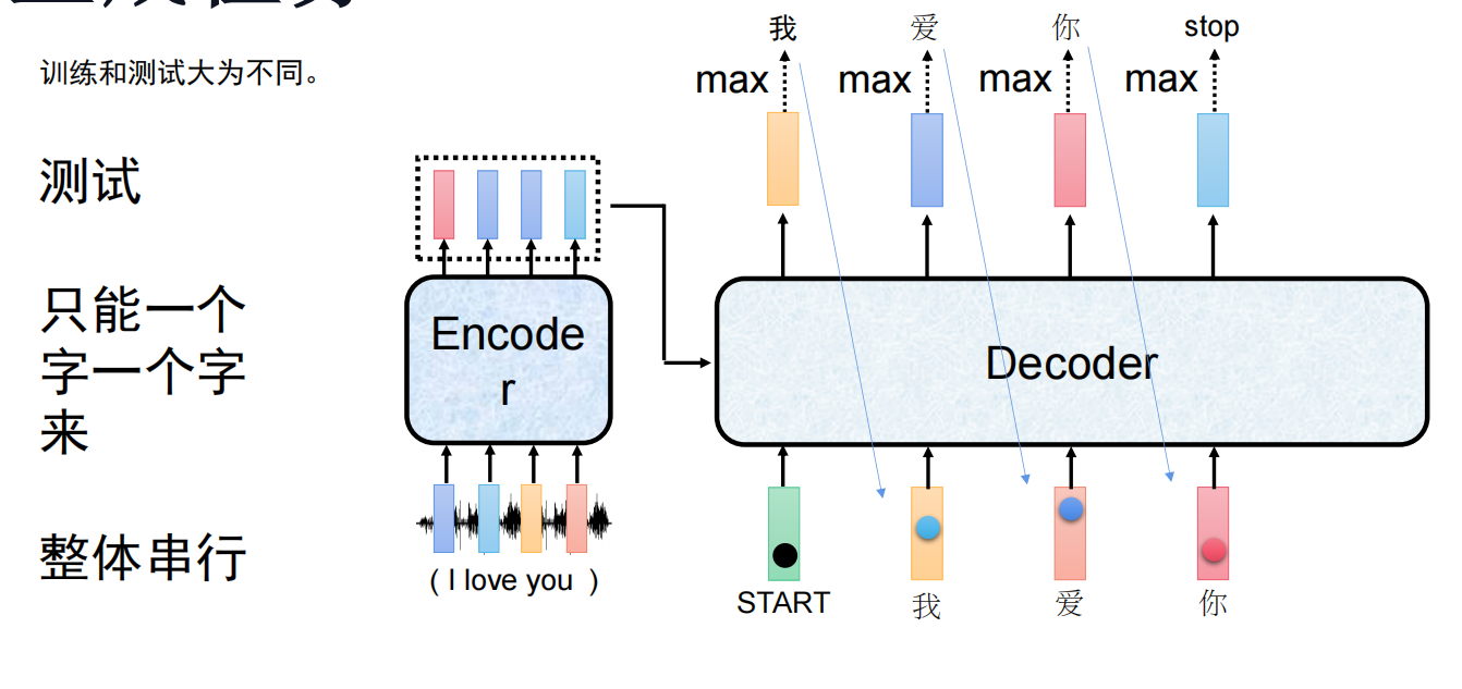 在 Encoder 端,我们可以看完整句话。但在 Decoder 端,生成是一个时间序列过程。