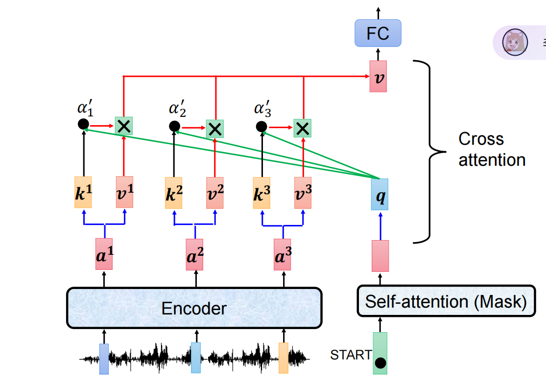 Key (K) / Value (V):来自 Encoder(代表“原文有哪些信息”)。