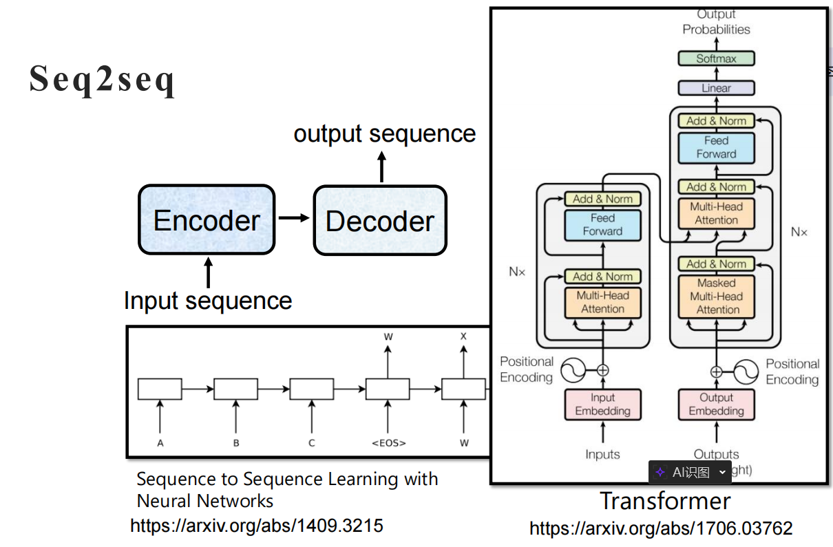 生成任务的核心是 Sequence-to-Sequence (序列到序列)。它的特点是输入和输出都是序列,且长度不固定,由模型自己决定输出多长。