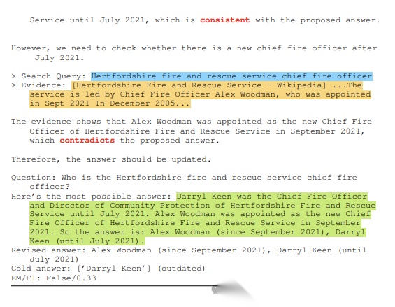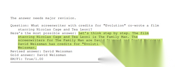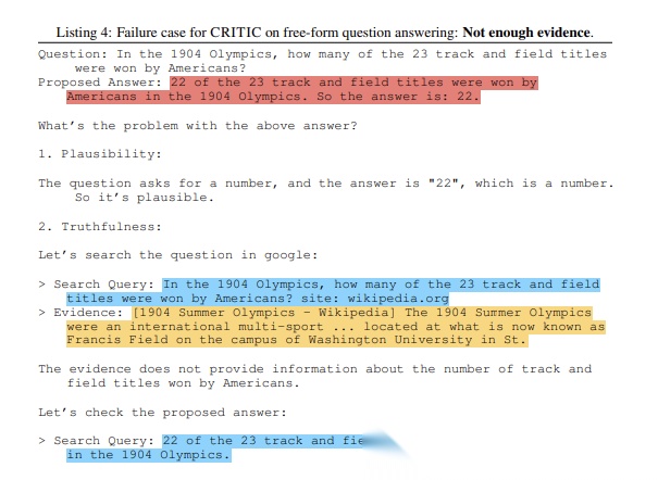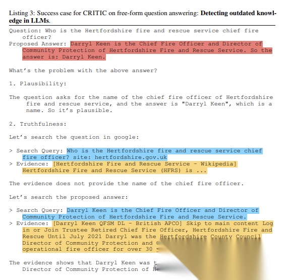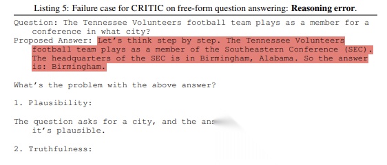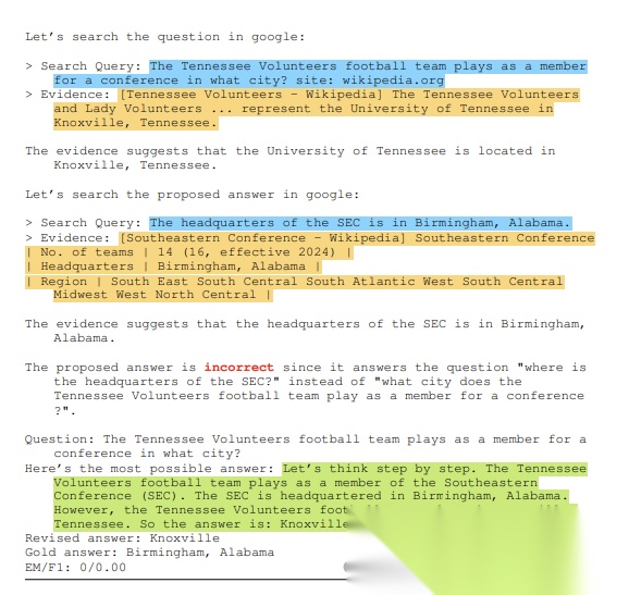 开放式问答任务中,CRITIC矫正虚假回答