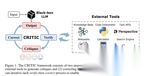 为了解决这些问题,作者提出了 CRITIC 框架,使得黑盒式的大语言模型 Agent 应用可以跟外部工具进行交互,从而进行自我严重和修复,完善输出内容。CRITIC 核心是借鉴了人类的认知和批判性思维,不断验证和修正模型的输出,使得模型输出的效果更好。