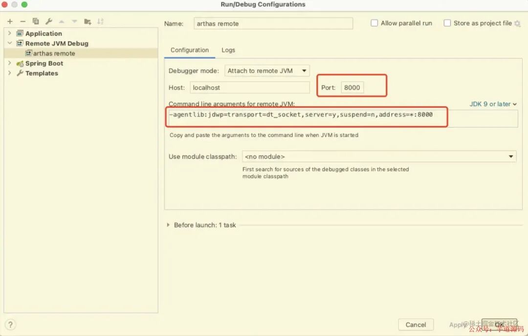 在Arthas源码的项目中设置远程debug