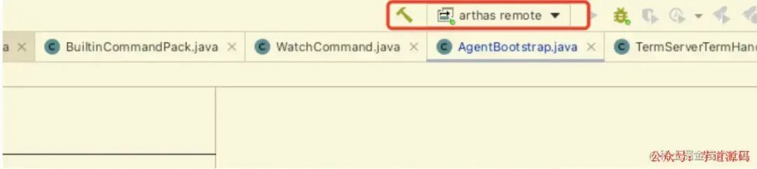 在这个方法com.taobao.arthas.agent334.AgentBootstrap#main任意位置打上断点,切换到刚刚设置的远程debug模式,启动项目