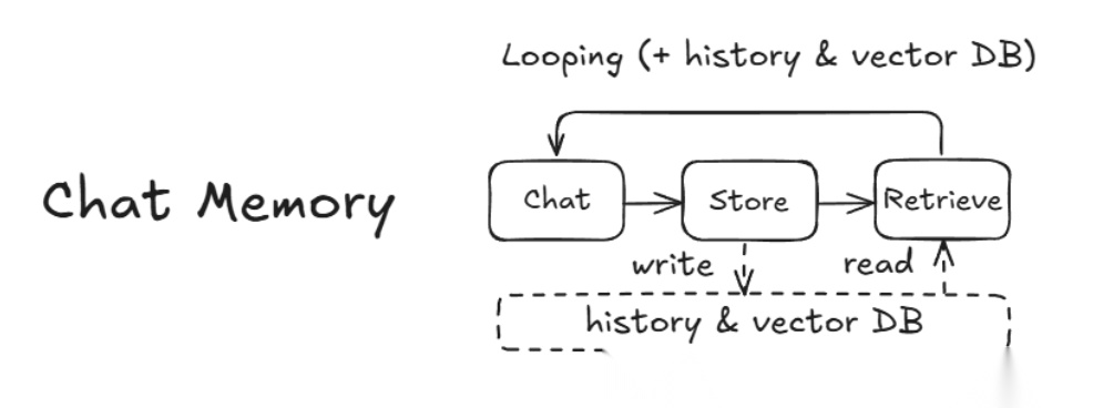 有了RAG,再结合流与循环就能组合成**「AI聊天应用中的聊天消息记忆模块」**: