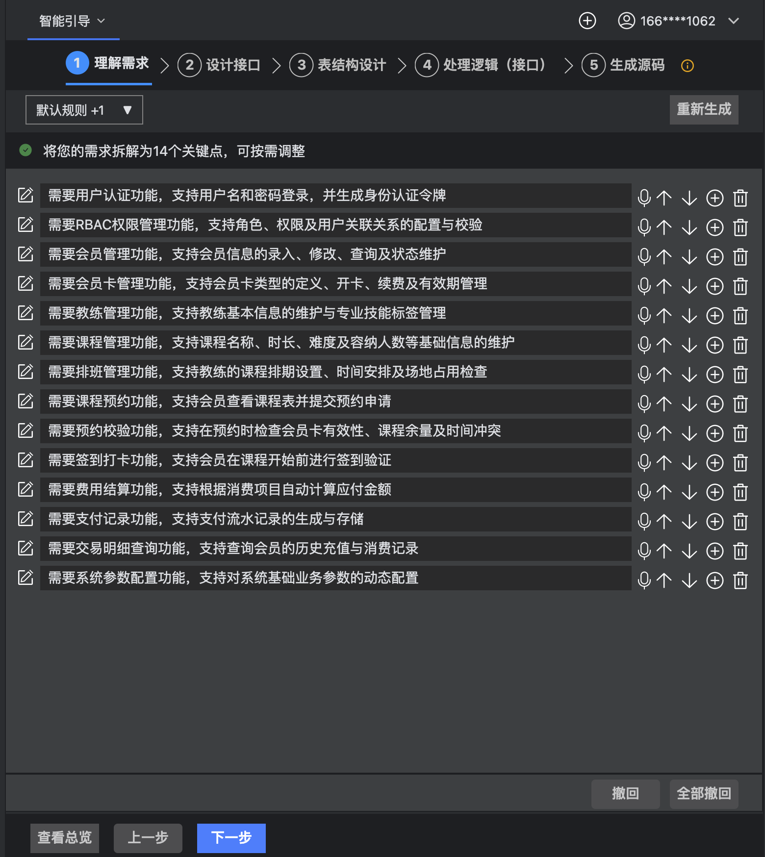 智能引导将分五步来创建项目,首先是理解需求。