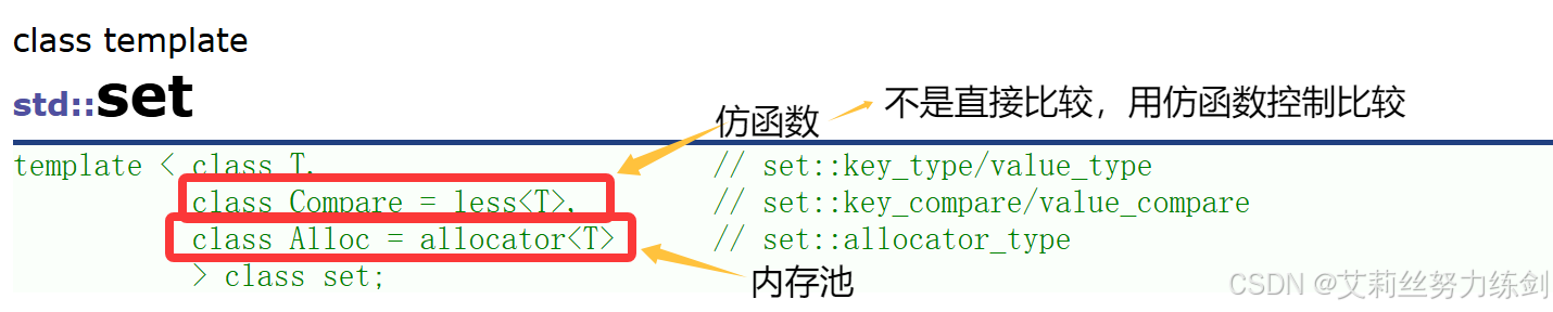 class Compare = less<T>, // set::key_compare/value_compare
