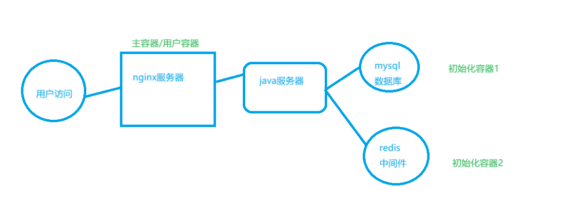 假设要以主容器来运行nginx,但是要求在运行nginx之前先要能够连接上mysql和redis所在服务器